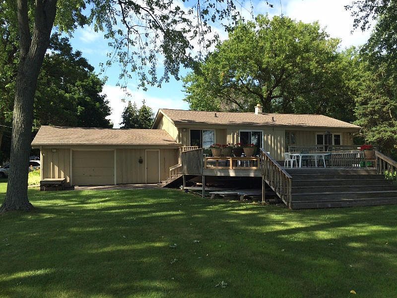 This open concept lake home offers two levels for entertaining. The kitchen has been updated, nice dining area, updated bathrooms. This lake home is situated on a large level lot that offers privacy and beautiful shade trees. Approximately 110' frtg. The southern exposure allows for plenty of bright lit spaces. Patio doors lead out to an expansive deck overlooking the awesome lake views and level yard for all your lake entertaining activities. There is a nice ramp on the frontage for launching your boats.