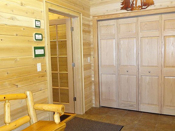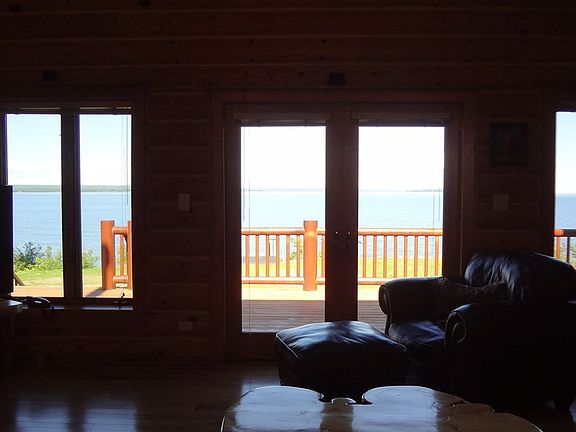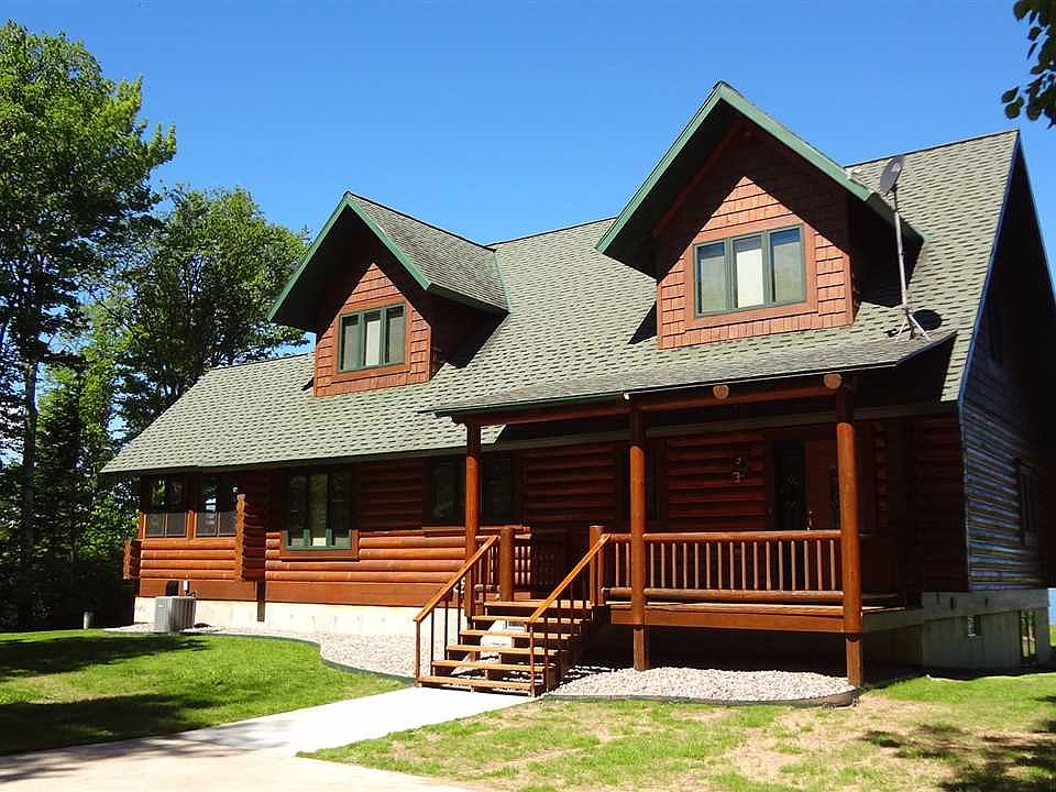 This Lake Superior Lodge is used as a successful vacation rental. The open living area is the main heart of the home. The kitchen has gorgeous wood cabinets that blend seamlessly into the log, the granite countertops mixed with the stainless island make this a true chefs kitchen! There is a solid timber breakfast bar raised on the island providing a nice casual space for a quick meal or snack. The dining area is just as inviting for meals or even games and opens to a sunporch where you can extend the fun! The living room has a freestanding woodstove and full view French doors opening to a large lakeside deck a well as windows flanking each side allowing all the views to encapsulate the space. New wood floors extend through this level, including the main floor bedroom; the full bath has clean features and nicely tiled floors! The half log staircase walks you to the loft area and the homes master suite. The wood floors continue on this level. The loft allows you to enjoy the views of the lake as well as the wood clad vaulted ceilings! The master suite is complete with a personal balcony and spacious bathroom with jet tub and separate shower; a true retreat! The living space keeps going in the finished lower level with a family room, bar area, bedroom and .75 bathroom! The lakeside of the home is lawn that extends down to a sandstone shelf that flows into the water; the flat rock is easy access to the water and a great space to sit and enjoy all that Lake Superior has to offer. A 4-car 36'x72' detached garage (pole building) is a bonus; it's tucked away from the main home but provides great storage for toys and cars and has an amazing heated workshop!