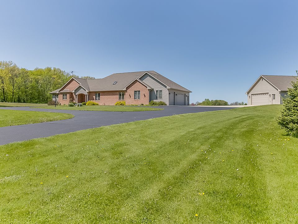 Dreaming of a beautiful home in the country with breath taking views - This is it! You will fall in love the moment that you step into the inviting foyer. Opens into the living room with a beautiful gas fireplace and brilliant views of this country setting. The light pours into a bright open kitchen with access to the deck. Entertain family & friends for a weekend cookout. Then enjoy an evening relaxing by the fire pit in the backyard. This 3 bedroom, 2.5 bathroom ranch home features so many extras! A main floor family room with 2nd gas fireplace & wet bar. The additional garage is the perfect man cave retreat - epoxy flooring & heated. Basement with full windows & access to 3 car attached garage. The home is heated & cooled with a very efficient Geothermal system. Perfect home sweet home!