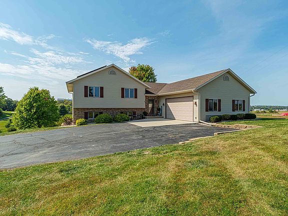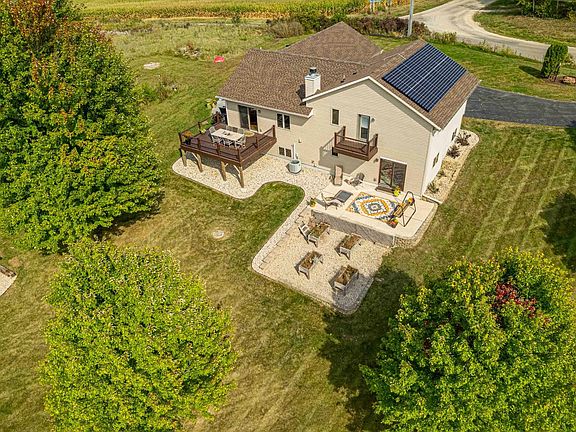 This spacious Tri-Level on 1.76 (per assessor) picturesque acres near New Glarus offers room for everyone with a quick commute to main roads. The main level features vaulted ceilings, a large kitchen open to the dining area and living room with fireplace. Upstairs you will find a full bath, 2 bedrooms, and a primary suite with private bath. The lower level offers 2 more roomsâ€â€ideal for a bedroom, office, or flex spaceâ€â€plus a full bath and living area with walkout to the backyard and patio. Down a few more steps is a huge family room with wet bar and additional flex space. Enjoy sunsets and sweeping views from the back deck! Home also features solar panels and many other updates! Close to bike trail, brewery, and golf course!