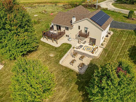 This spacious Tri-Level on 1.76 (per assessor) picturesque acres near New Glarus offers room for everyone with a quick commute to main roads. The main level features vaulted ceilings, a large kitchen open to the dining area and living room with fireplace. Upstairs you will find a full bath, 2 bedrooms, and a primary suite with private bath. The lower level offers 2 more rooms?ideal for a bedroom, office, or flex space?plus a full bath and living area with walkout to the backyard and patio. Down a few more steps is a huge family room with wet bar and additional flex space. Enjoy sunsets and sweeping views from the back deck! Home also features solar panels and many other updates! Close to bike trail, brewery, and golf course!