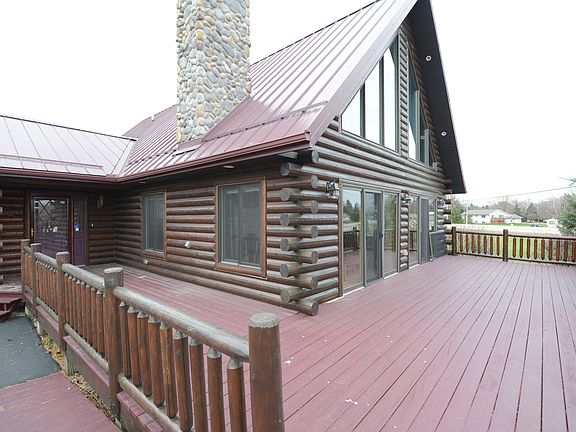 8” Full log, multipurpose, model home in Ixonia! Beautiful open concept first floor with cathedral ceiling, NFP with field stone and pellet insert. Hickory HWF’s throughout. Breakfast bar in kitchen, w/ Rustic Elder cabinets and quartz sink. Wall of widows & patio doors lead to 28X12 wrap around deck w/ wheelchair ramp. MBR w/ WIC, pine tray ceiling and private bth w/double sinks and whirlpool tub. Finished LL, ICF heated floors, with 4th BDRM, full bath, and office area. 2.4 Att garage w/heated floors.