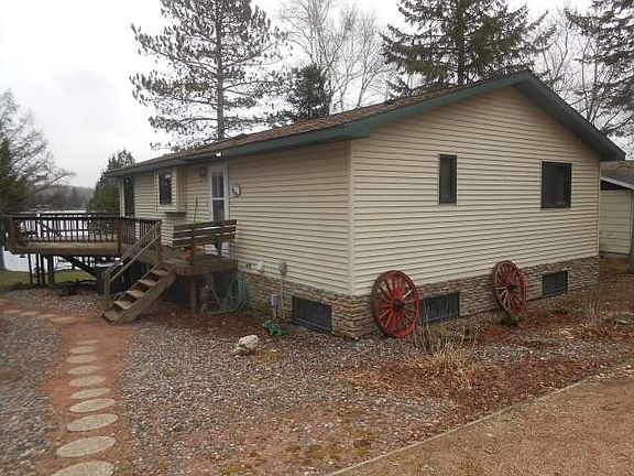 (209) Custom 3-bedroom, 2.5 bath home on Wilson Lake, part of the Phillips Chain of Lakes, has a great Northwoods feel and thoughtful extras. Open concept living-dining-kitchen features cathedral ceilings, stone fireplace in living room, wrap-around deck and gazebo, oversized garage, great lake views, sandy frontage and so much more! Come and see! (26-37-1W)