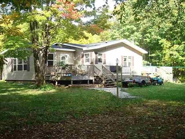 COUNTRY COMFORT is what you'll have with this 3BR, 2BA spacious home with 2 acre woodsy setting bordering Hiawatha National Forest for all your outdoor enjoyment. Has gas fireplace, large family room, 30x47 deck, full walk-out basement, and 3 car heated/insulated garage. MANY OTHER FEATURES. Large mud room/utility. Eating bar in kitchen, sliding doors off living room, jet tub in MB, workshop in basement, high efficiency furnace, cement drive, landscaped yard, 2 sheds, lots of storage. Patio slider & back door screens will be replaced. New high efficiency propane FA furnace in Nov 2013. Basement has been waterproofed and has a transferable guarantee. Seller will give $1000.00 flooring allowance at closing.