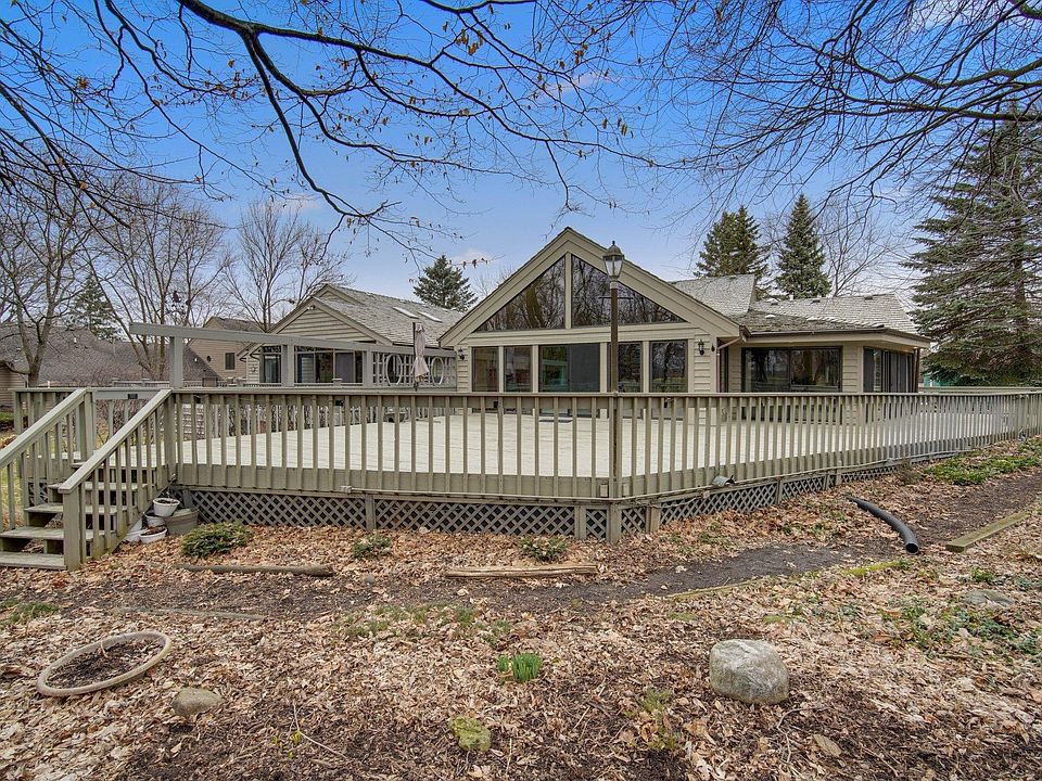 Beautiful tree lined lot on cul du sac w/gorgeous perennial gardens surrounding well cared for condo. Year round 180 degree view from full size windows/patio door that overlook the 5th hole of North Hills Country Club. As you enter the home your eyes are drawn to the spacious great/dining rm that looks out onto deck & park like setting. Appointments to the great rm inc: built-in BC, 2-gas fireplaces, Hunter Douglas silhouette sheer blinds, cathedral ceilings with 3 skylights that bathe the rooms with natural light. Well placed windows provide natural light throughout home. You'll find 3 season rm a quiet, private spot to sit & relax. Remodeled galley KIT inc: updated cabinets, corian ctr, & Brkf- bar. First flr MBR, remodeled MBath , SS W/Travertine tile, Nat mined marble counter, WIC,