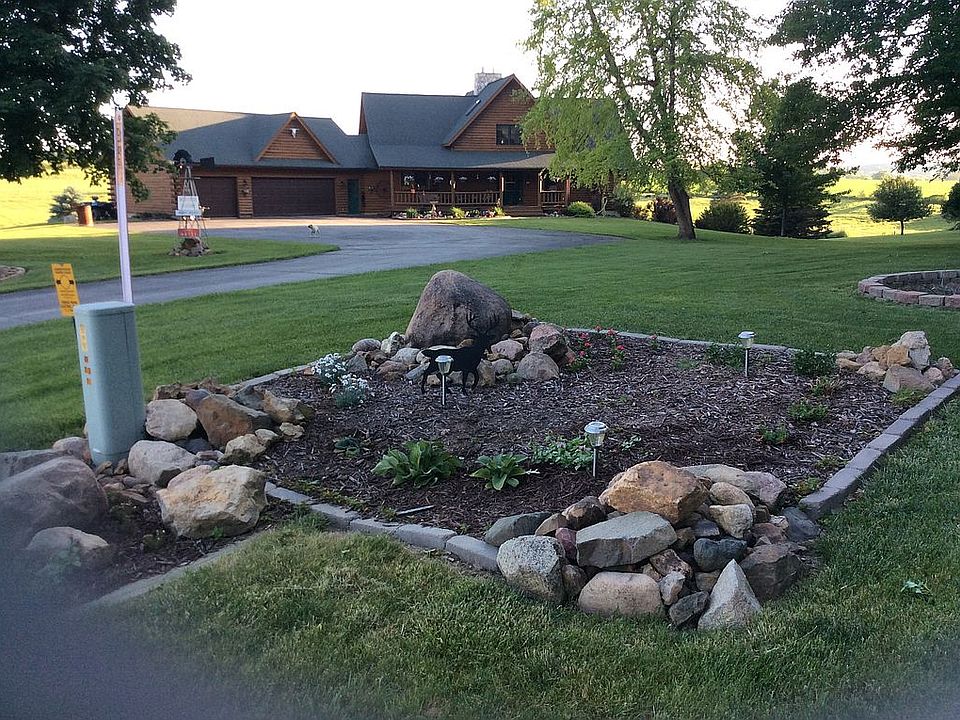 1 1/2 story 1/2 log sided home. Gas fireplace, 3 bedrooms, 2 1/2 bathrooms, 3.01 acres, shed, nicely landscaped.