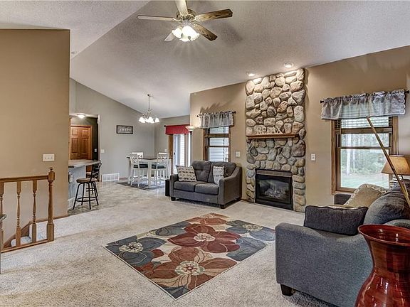 Spacious 3 bdrm ranch home located on just over 1 acre with woods in back. Enjoy the covered front porch or the backyard deck and firepit. Open floor plan with vaulted ceilings, gas fireplace, tons of cabinet and counter space in kitchen. Master suite has 2 closets, double vanity, and jacuzzi tub. Lower level has family room area finished off and more room for future expansion of another bathroom and more bedrooms. New roof 2012. Existing home warranty included. All carpets pro cleaned.