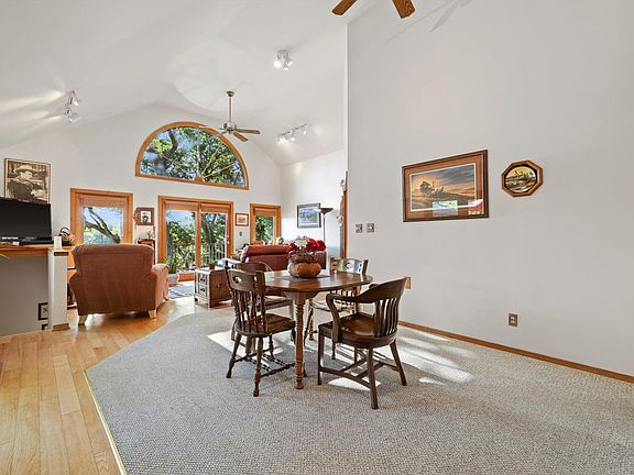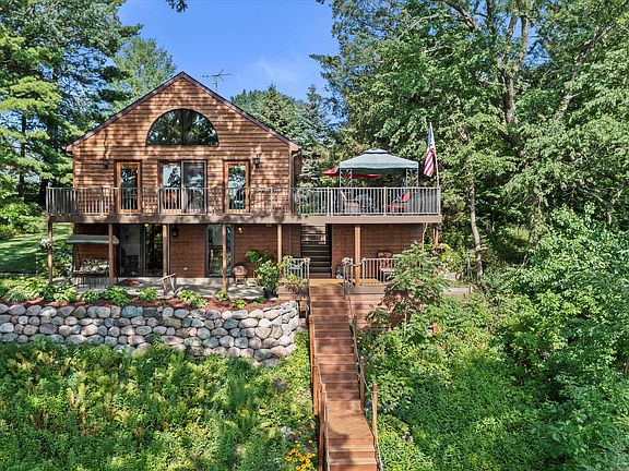 Majestic views of Pleasant Lake from this gorgeous home sitting on 79 ft of water frontage. This is everything you want when it comes to a lake home. Four car heated garage with additional 7 parking spaces out of the garage, large deck that wraps around the home over looking the lake. A walk out basement again with stunning views of the lake leading to the patio and walk path to the lake. This home boasts vaulted ceilings, hardwood floors, stainless steel appliances. Also office that could be converted in to a 3rd bedroom.Owners pride shines through the property and the greenery through out the property. Come see it today !