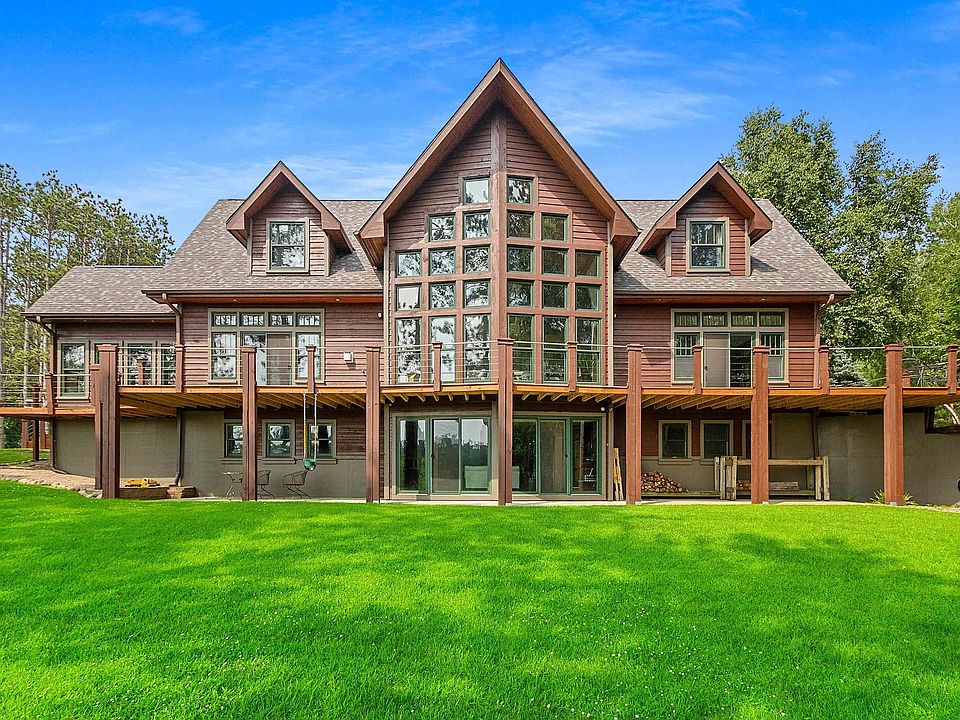 Experience breathtaking views at this 5,000+ sq ft, 5BD/3.5BA custom-built home on 14 acres overlooking the 2,500-acre Herb Behnke Sanctuary. This rustic retreat features a gourmet kitchen with abundant cabinetry, a massive island, walk-in pantry, and a dining area with fireplace. Enjoy panoramic views from the great room with soaring ceilings, wood-burning fireplace, and wall of windows. Additional highlights include a 4-season room, expansive deck with gas grill, luxurious primary suite with walk-in shower and tub, loft library, walk-out lower level with sauna and steam shower, heated 30x69 shop/garage, geothermal system, generator, and more. No zoning per town of Maine. See seller updates.