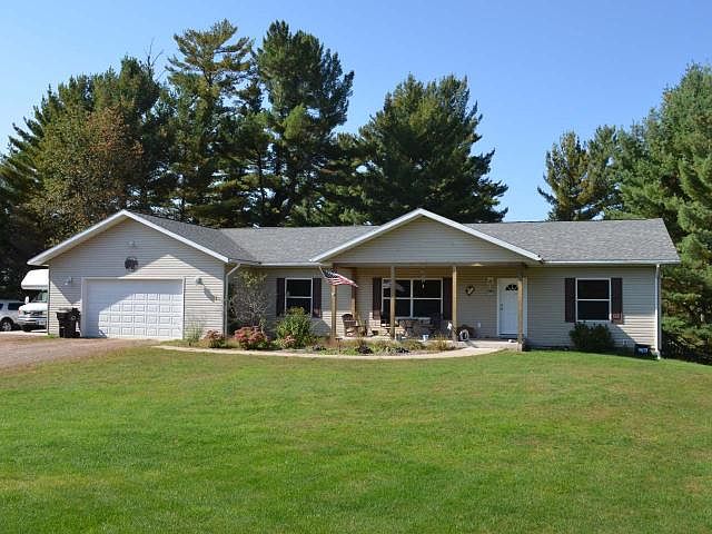 TRANQUILITY IN THE COUNTRY AWAITS YOU! If a nice home with lots of privacy is what you desire, then look no further! This property punches all the buttons. The well maintained home features 3-4 bedrooms including a master suite, 3 bathrooms, large open living room, beautiful kitchen that flows into the dining room, main floor laundry and a partially finished walkout lower level that includes a huge family room complete with a gas stove. There is a large covered front porch and a nice rear deck. Storage is no problem as there is an attached three car garage, a heated detached two+ car garage w/loft storage and a utility shed. As an added bonus this property includes a rustic barn board and beam cabin that is perfect for stepping back in time. If this isn't enough, all of these amenities sit on 59+/- acres of beautiful rolling woodlands with trails throughout and Skanawan Creek cutting through the property. This is a move in ready property that beckons you to come and enjoy!