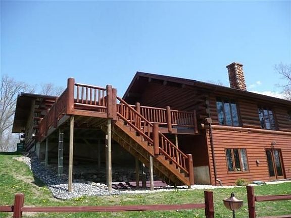 PRICE REDUCED, WAS $449,900. Total seclusion at end of dead end road. Trophy whitetail bucks and turkeys galore. Some woods, tillable, and marshland. Creek runs through property. This immaculate custom built log home is in excellent condition inside and out. Lower level is exposed with walkout. Just minutes to Portage, The Dells, and Interstate. UHP included.