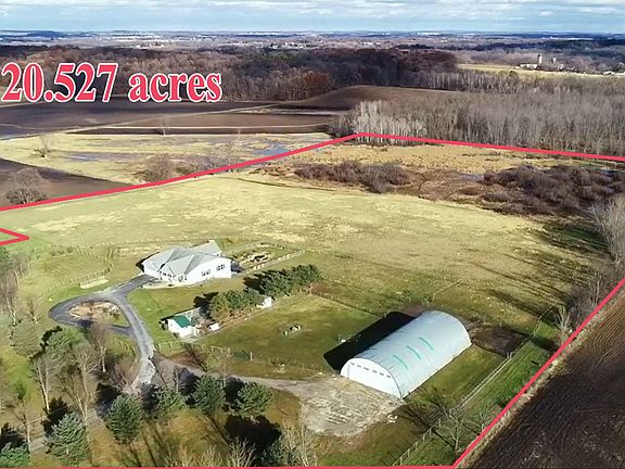 Welcome to Covenant Acres Farms! Enjoy this gorgeous 5BR/3BA walkout ranch home on 20.527 beautiful acres. Home offers over 4000 sq. ft. of living space. Main level features vaulted ceiling, updated kitchen, and newer hardwood flooring. Relaxing 3-season porch. Back deck with amazing views. Other property features include ponds, chicken coop, greenhouse, and a 5000 sq ft outbuilding with heated tack room, box stalls, and workshop area. 10 paddocks that interconnect. The land offers gardens, 6 acre hay field, trails, hunting areas, and an outback area with springs and plenty of wildlife like cranes, turkey, geese, deer, and more! Located in the Oconomowoc School District. Great rural setting yet close to all the conveniences!