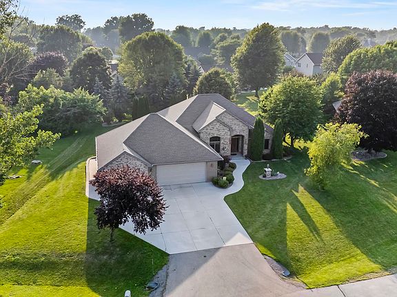 Thoughtfully designed and custom-built, this distinctive Ranch-style home sits in the Village of Harrison within the sought-after Kimberly School District. It offers three private suites, a great room with a gas fireplace and a dry bar, a sun-filled three-seasons room, and an expansive kitchen with a walk-in pantry, maple cabinetry, and adjoining formal and casual dining spaces. Warm Brazilian cherry floors, heated tile floors, arched openings, arched stairwell, oval tray dining room ceiling, solid surface tops, and so many details that add charm throughout. The lower level boasts a wet bar, entertainment lounge, and direct garage access. Beautiful landscaping, a covered grilling porch, and peaceful surroundings make the setting near North Shore Golf Club & Lake Winnebago complete.