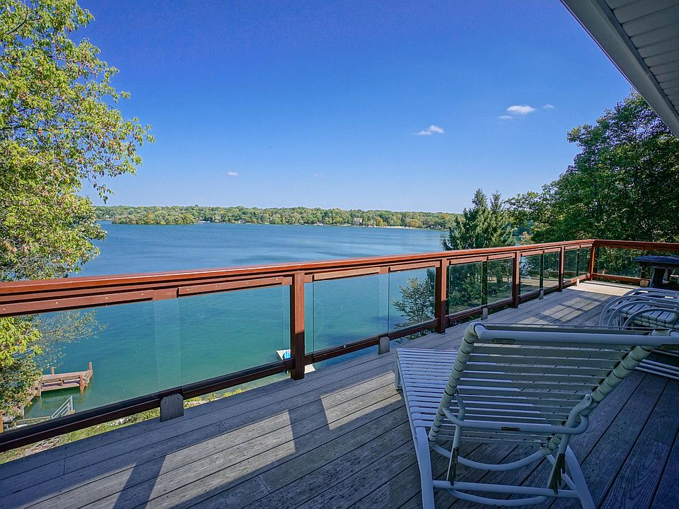 Remarkable home and setting with incredible lake views and 75 ft of frontage on Booth Lake! Enjoy this great lot featuring mature trees, long driveway, and private back yard. Incredible panoramic lake views. Tram/lift system from home to lake frontage. Home had a major addition in 2004 and offers 3BR/3BA and a finished walkout lower level. Main level has family room with gas fireplace. Kitchen with appliances included. Large dining area. Lake views from front living room. Main floor master suite has private bath and walk-in closet. 2 staircases to lower level. Lower offers rec room, 2 bedrooms, full bath, and plenty of storage space. Large lakeside deck with glass panel railings. Detached 3-car garage. Pier included. Very conveniently located!