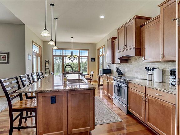 Welcome to the 3-Time Parade Of Homes site of Twin Pine Farm! Gorgeous open concept ranch 5/6 BR 3.5 BA 3.5 attached GA boasts 4100 sq ft of cozy warmth. Nestled in a highly desirable location, Twin Pine Farm offers the perfect combination of privacy and convenience. Drenched in the southern exposure sunlight nearly all day. Stone gas FP; Brazilian Cherry HWFs; maple doors/trim; glass backsplash; granite counters; stainless appliances included. KIT offers pantry, dinette, eat-at breakfast bar center island & walk-out to patio. Master en suite w/WICs w/organizers; granite double sink counters & jacuzzi tub. Jack-and-Jill style baths for BRs 2 & 3. Lower level full RecRooM w/full wet bar; eat-at counter, add'tl BRs or fitness are completes the lower level. Home warranty for peace of mind.