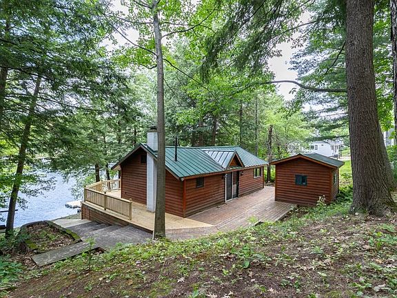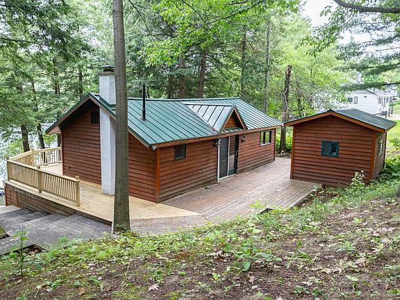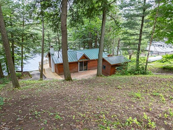 Escape to your very own waterfront oasis in this updated and charming cottage. Relax and unwind as you take in breathtaking views of the water. 7 miles of shoreline on Lower Long Lake. This lake connects to Bass Lake, is crystal clear, and stocked with fish by the state. The full finished basement provides ample living space and storage, with 2 finished rooms complete with closets, making a home office, or a workout space. Two finished storage sheds allow for all your outdoor toys and more. Enjoy the views year-round from the cozy and inviting Great Room, which provides the perfect setting for spending time with loved ones, or soaking up the sun. Deck off the back was completely redone, steps leading to the water and redone floating dock. Situated in the heart of the Northwoods, this waterfront cottage is a true gem, offering a rare combination of tranquility and modern amenities.