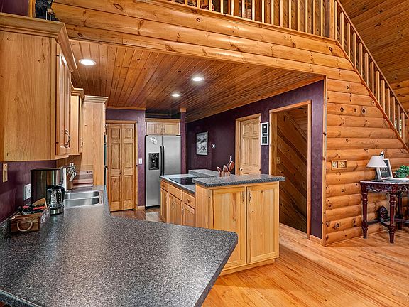 This 3BR chalet offers a tranquil retreat w/stunning views of the private 8-acre lake & 400 ft of sandy frontage. Nestled on 2.4 wooded acres in the beautiful Harrison Hills area, the home features an inviting open-concept main floor w/vaulted ceilings, a cozy gas fireplace, & access to a large sundeck perfect for overlooking the lake. The spacious primary suite in the upper loft includes a soaking tub, shower, & a charming private balcony for sunrise views. The walkout lower level boasts a family room with a wet bar, another gas fireplace, & easy access to a lakeside patio where you can enjoy watching family by the water. With a lakeside beach, pier, & an ATV/UTV-friendly road leading to nearby recreational trails, this property is a year-round haven. The insulated 2-car garage completes the package, ensuring you have ample space for all your toys & gear. This is the perfect escape for outdoor lovers looking to unwind by the water or explore the nearby wilderness.