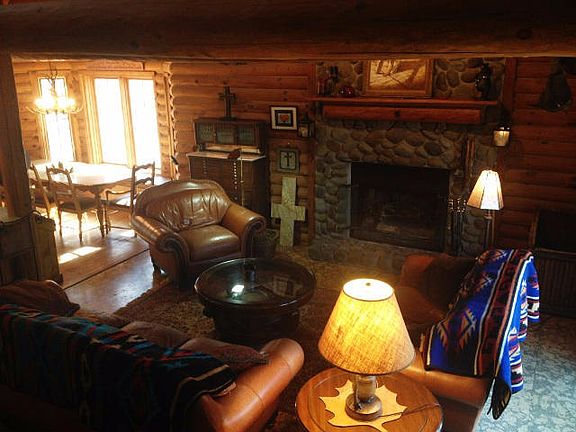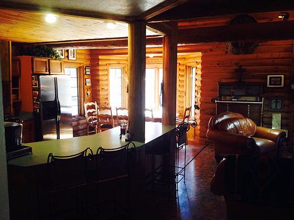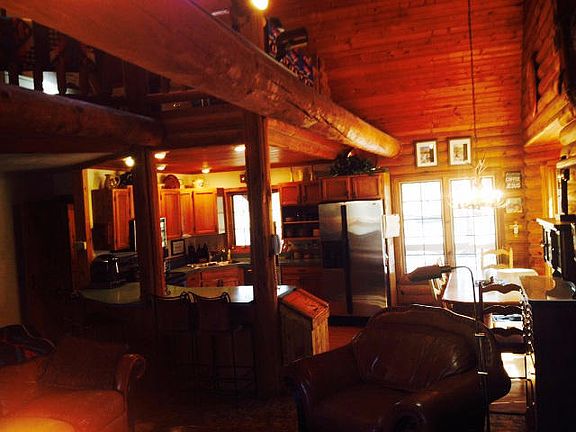 Rustic yet elegant log cabin on over 5 beautiful acres. Gorgeous great room w/elegant cork flooring. NFP, vaulted wooded paneled ceiling, opens to walkout porch. Rustic kitchen nook overlooking flower garden and great room. Upstairs loft/office overlooking great room and fireplace. Master suite w/vaulted ceiling, built in dressers, hwf's, luxurious bath w/ granite counters & Jacuzzi. LL rec room and 4th bedroom w/egress. This is a must see.