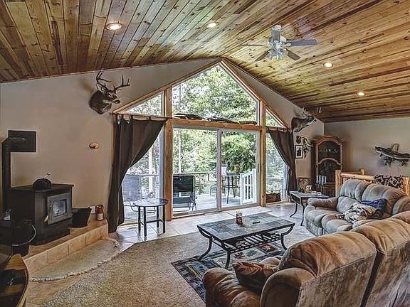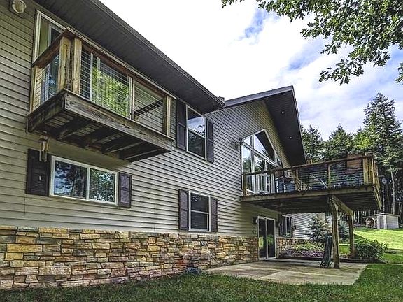 WOW!! Million dollar lake view is featured from all rooms in this 3 BR, 2.5 BA, quality built newer home nestled away on a hillside in the extremely popular "Harrison Hills" area.You will love this beautiful open concept living area featuring vaulted wood ceilings, and convenient one floor living with master suite.Here's the best part, expansive floor to ceiling and wall to wall windows overlooking crystal clear, 132 acre Long Lk which connects to 100 acre Bass Lk for your total water sport experience.Enjoy this AWESOME view from the home or the deck. Guest BR,1/2 BA with Washer Dryer hookups and attached garage complete this level.Wait! there's more...25x24 family room with wet bar and fireplace, guest BR and full BA in the lower level plus patio. Large lot has 350' of frontage, landscaping and a beach area with private boat launch.Near 1000's of acres of public land. Hunt,ATV, snowmobile or bike right from your property. This is what the great North Woods is all about.