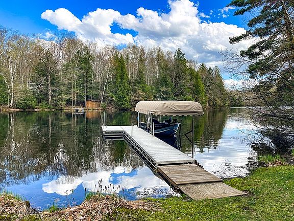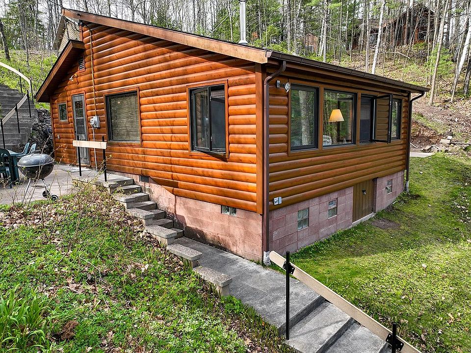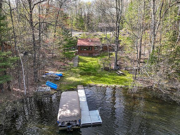 Nestled on the back bay of Seven Island Lake, 2-bed, plus loft, 1-bath cabin offers an escape in Harrison Hill. With its beautiful 1/2 log siding and picturesque lake views, a perfect seasonal getaway or a potential year-round retreat. Open layout living space and enhances the scenic lake views. Features an updated kitchen with custom cabinets that provide plenty of storage and style. A cozy loft area adds additional sleeping space, ideal for guests or family. Large updated windows create a warm and inviting atmosphere with a wood free standing fireplace. Mini Split heating and AC system, newer drilled well, and a holding tank, easy drain plumbing, simplifying seasonal maintenance. Well-maintained exterior, large two-car garage provides ample storage for vehicles and lake gear. Currently used as a seasonal home, this cabin has great potential to be winter-ready with some upgrades, allowing for year-round enjoyment. This property is a haven for outdoor enthusiasts and nature lovers.