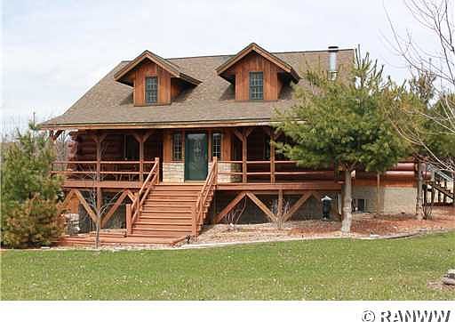 20 acre farm has 24x30 barn w/30x50 pole shed addition. Pasture areas for animals. Private pond on property. Log home w/ open floor plan, kitchen w/large island, main floor master suite w/ private bath & WIC. Main floor laundry. Beautiful wood burning fireplace (gas start). Upper level has loft, 2 bedrooms, & full bath. Lower level finished & includes in-floor heat, lg family room, & home office! Back deck w/fireplace!
