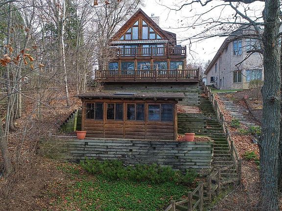 Looking for a weekend getaway? Summer retreat? Or year-round home? This is it! Beautiful custom built home nestled among the trees. Framed construction, studs & drywall with stunning half cut log exterior (easily maintained like cedar siding) Gorgeous rustic log exterior. The great room boasts fabulous vaulted ceilings and wall of windows overlooking the beautiful lake. 2 gas fireplaces - 1 in the great room & the other is a beautiful feature in the master suite. 2 amazing decks - 1 off the great room & the other is in the walk-out of the lower level. LL is perfect for entertaining. 12 person hot tub situated in an enclosed gazebo is great to use all year long. 2 car attached & 3.5 car detached garage. So much to see & enjoy.