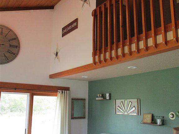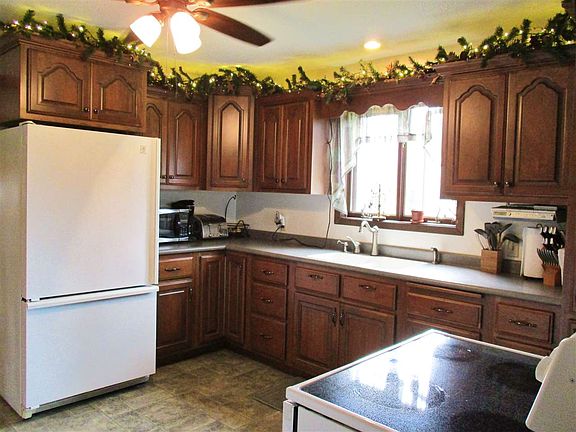 Cedar sided 3 bedroom, 1.75 bath country home on +/-24.23 wooded acres. Custom cherry kitchen with pantry. Dining room and living room with cathedral tongue and groove ceilings. Wood burning fireplace. Main floor master bedroom and updated bathroom. Main floor laundry. Upper level with an office, balcony and Jack and Jill bedrooms with an updated full bathroom in between. Finished basement with a family room, bar/rec room and game room. Attached garage enters to a spacious mudroom. Detached heated garage/workshop. Beautiful yard with 2 yard sheds and a double loop driveway. +/-24.23 wooded acres with direct access on the Pine Line Recreational Trail, pond and the Fisher Creek (trout stream) flowing through the property. The kitchen, garage and basement refrigerators, microwave, stove, washer, dryer, window coverings and water softener are included in the sale price.