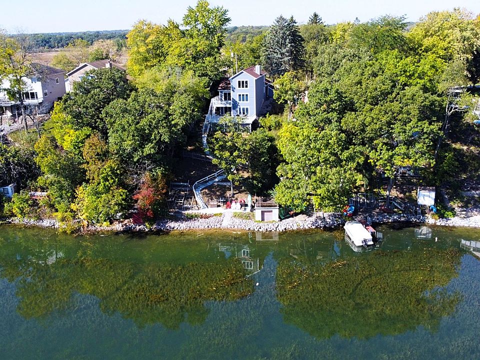 Just in time for summer - this beautiful updated lake home is move-in ready for your year-round fun. Views of the bright blue waters of Booth Lake from almost every room. 50' of lakefront, private pier and fenced yard makes it easy to enjoy this property on day one. Beyond the stunning beauty, this house has been impeccably maintained inside and out- new roof (2020), replacement windows (2022), furnace (2022), patio (2022), shoreline wall (2020), new water conditioning system (2024) and more! Fall in love with the hardwood floors, quarts counters, wood-burning fireplace, lakeside deck and patio. 3 levels of lakeside living affords privacy and multiple living spaces. Detached garage and driveway to store all your water and winter toys. Lakefront living at it's finest!