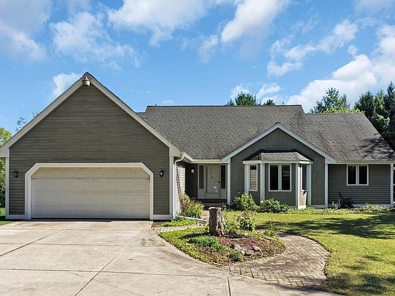 Escape to an enchanting sanctuary where modern comfort meets natural beauty. This custom-built 3-bedroom, 2-bath ranch rests on nearly 6 acres of rolling woodlands, offering peace, privacy, and a park-like setting just one mile from the charming Village of East Troy.Inside, you'll find a warm and inviting interior highlighted by a full stone fireplace, a spacious master suite, and an open, flowing layout perfect for everyday living and entertaining. Step outside to the expansive 60-foot deck, where breathtaking views of nature and frequent wildlife visits create the ultimate backdrop for relaxation.Designed with sustainability in mind, the property is equipped with 24 solar panels (2023-24), providing eco-friendly energy and little to no utility costs for much of the year.