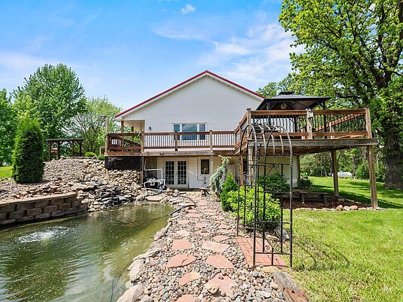 Hard to find in River Falls, this is a beautiful picturesque property with a large pond. Multiple ponds flow into each other. Chicken coop all ready to go. The perfect country oasis. Garden, enjoy the wrap around deck or hit the trails. Lower level bedroom could be used as a family room. The home has been well cared for and maintained. Main floor laundry makes it easy to live on one floor. A wonderful property with over 7 acres to enjoy!