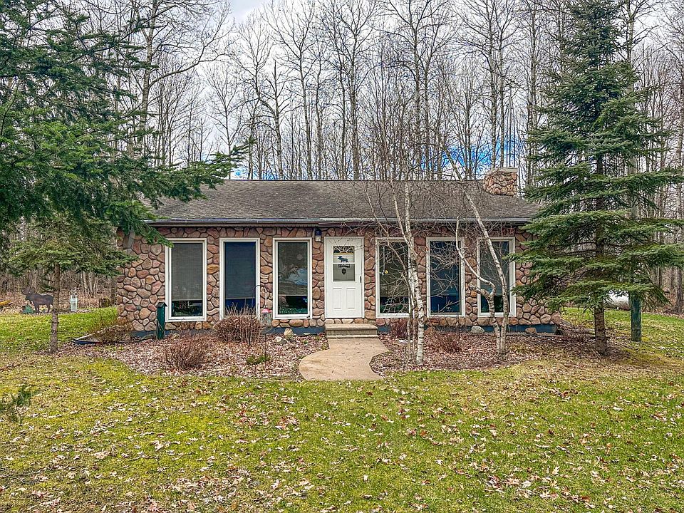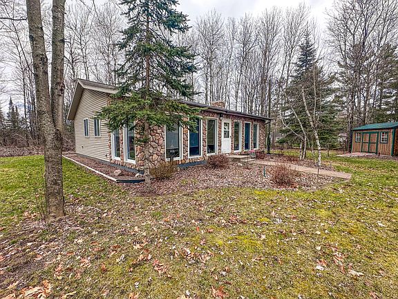 Tucked away on 1.2 acres of peaceful forest, this adorable year-round cabin is the cozy hideaway you’ve been dreaming of! Step inside to an inviting open-concept layout, where a stunning fieldstone wood-burning fireplace takes center stage—perfect for snuggly nights by the fire. The main level features a spacious bedroom with a walk-in closet and full bath, plus the convenience of main floor laundry. One of the highlights is a bright and cheerful sunroom full of windows, letting in tons of natural light and offering beautiful views of the surrounding woods—ideal for your morning coffee, an afternoon read, or plant-filled serenity. Need extra space? Head downstairs to discover a bonus room, a handy workshop, and tons of storage. Two small utility sheds offer even more room for tools, toys, or outdoor gear. Whether you're looking for a weekend escape or a forever home, this awesome retreat in the woods is packed with charm inside and out!