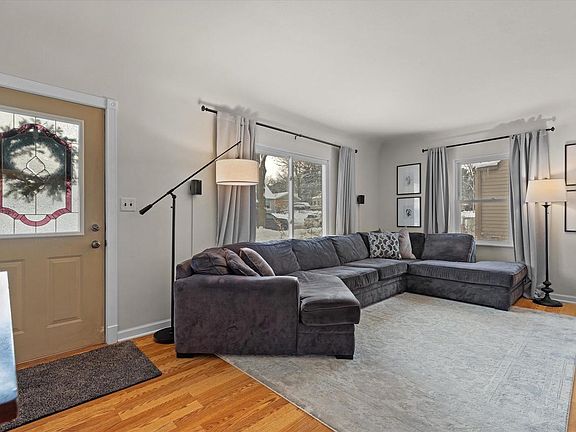Charming 3BR/1.5BA Cape Cod in Hiawatha Heights with Village Park practically in your backyard. Spacious entertaining areas throughout.Coved-ceiling living room with arches and hardwoods flows into an updated kitchen with patio doors to a large deck overlooking a mature, park-like yard. Finished walkout lower level adds great extra living space. Bedrooms offer comfortable updated flooring. Bonus studio/workshop off the garage is heated and cooled for comfort. Walk to playgrounds, splash pad, concerts, and downtown Menomonee Falls.