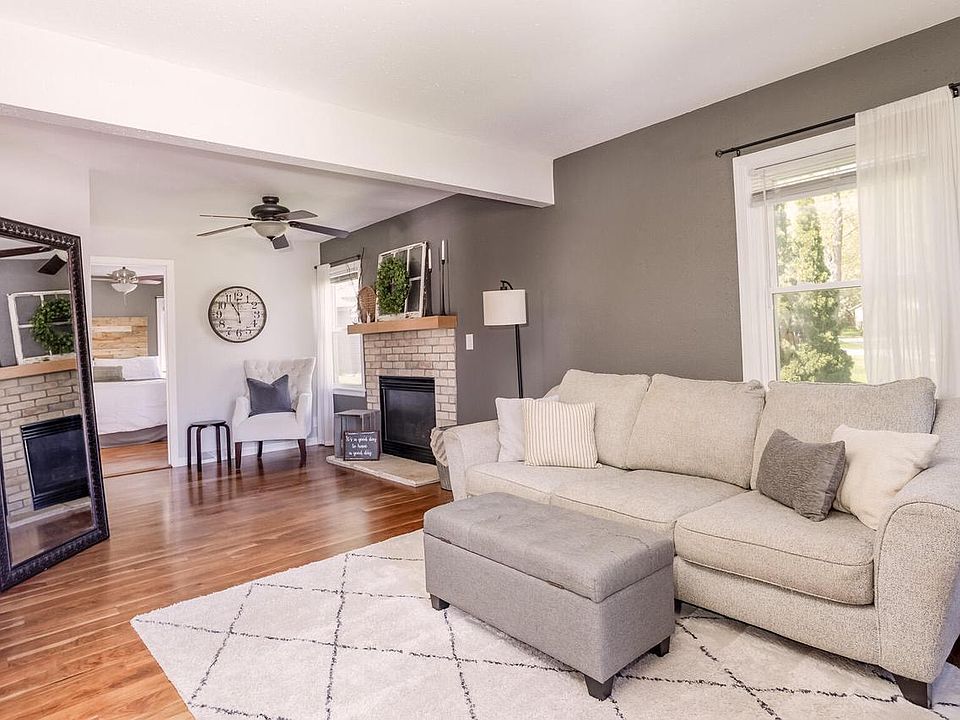 Move right into this adorably updated two-bed, two-bath ranch in the heart of Menomonee Falls. Delight in its airy layout with Brazilian cherry hardwood floors, sleek white trim and a cozy fireplace. The kitchen boasts solid surface counters, a stylish herringbone backsplash and white cabinets. Wake up in the primary suite with its walk-in closet and ensuite bath. Down the hall is the second full bath and bedroom. Venture downstairs to discover bonus living space, including a plush carpeted rec room and a versatile extra room. Enjoy your morning coffee on your patio and take walks to coffee shops, frozen custard, restaurants, the farmers market, Village Park and all that downtown Menomonee Falls has to offer! Call for a showing today.