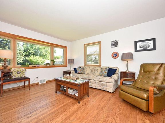 Cute 3 bedroom ranch home in desirable Menomonee Falls. Priced to sell! Living Rm / Dining Rm combo with lots of light from huge bay window. Kitchen has nice sized breakfast bar and tile floor. Hardwood floors in Living Rm, Dining Rm, Hallway and underneath carpet in all the bedrooms. Big open basement ready to be finished and stubbed for bathroom..... Detached 2 car garage. Private backyard. Low maintenance exterior. This home will not be on the market for long!