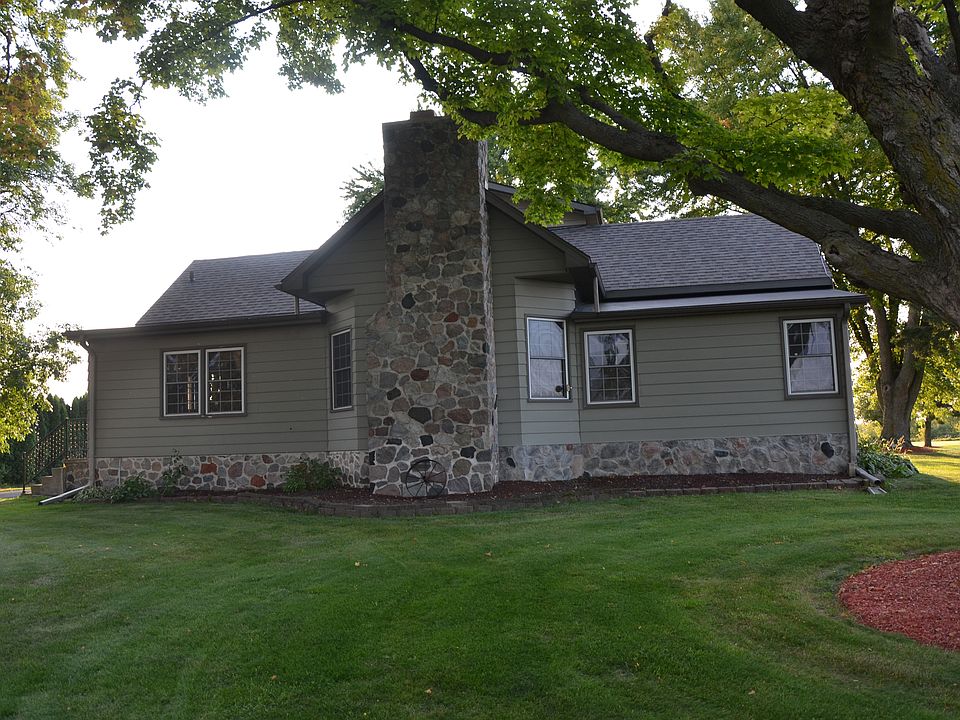 You don't want to miss this 3 acre secluded country farmhouse with huge outbuilding! Enjoy this peaceful setting and massive lot- with room for horses! Home has been well maintained with updates throughout. Kitchen features granite countertops & stainless steel appliances, and opens to a large great room with natural fireplace. Breezeway with hot tub adjacent to main floor laundry. 3 bedrooms on main level & upper level bedroom has adjoining sun room, deck, and separate outside entrance. Lower level with half bath has room to create a rec room! Outside you'll find a relaxing pool, patio & huge outbuilding with separate office/finished space!