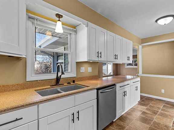 This beautifully updated ranch welcomes visitors and family alike with it's warm, inviting hardwood floors and neutral colors to set the tone. Remodeled galley kitchen with sharp stainless steel appliances included and gorgeous quartz countertops. Newer white cabinets with soft closing hardware gives a decidedly modern and polished feel. Enjoy not only a standard living room, but also a bonus family room which was an add-on to the typical floor plan in this neighborhood. Large sunny windows, lovely tilework in the bathroom and upgraded finishes make this home stand out. Updates within past 6 years: new siding, roof, gutters, driveway, appliances, lighting, kitchen and bathroom updates. Other perks include a 2.5 car detached garage, easy access to parks, schools, shopping and freeway.