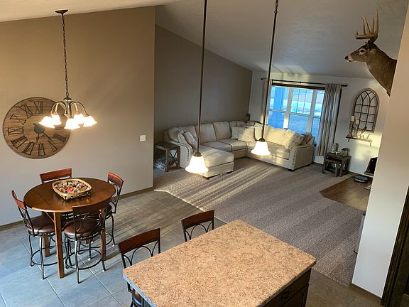 Located in Junction Meadows and the popular DAKOTA floor plan built by Vans Construction, a quality builder. Great central location to Manitowoc-Green Bay-Appleton-Chilton and in a quiet subdivision. Located on over .75 acre lot, spacious front porch, tiled back splash, tiled kitchen floor, matching Samsung kitchen appliances, window treatments, split bedroom plan, pantry, maple cabinets, 4 panel solid doors throughout, vaulted ceiling, 3 car garage both with garage door openers, master suite with double sinks and walk-in closet. Basement egress window and stubbed for future bath for additional living space. Buried sump pump discharge line to ditch and an established lawn! Amazing views from the backyard during sunset to vacant farmland.