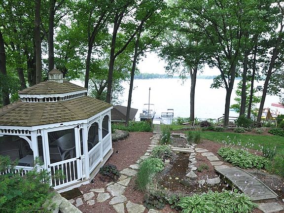 Lakefront living can be yours! Set on 1 acre w/77' of frontage on Potters Lake, this fabulous 4BR,2.5BA home has it all! Boathouse w/ramp, pier, lakeside deck, gazebo, 2 car + 3 car garages, multiple decks & luscious landscaping including waterfall! Dream KIT w/lg island, ceramic tile & vaulted ceiling w/skylights. MBR has hdwd floors & lakeside deck. LR w/stunning lakeviews! 4th BR/Den has knotty cedar decor overlooking water. Fnshd walkout lower level w/unique atrium! Easy commute to Milwaukee. Home Warr.
