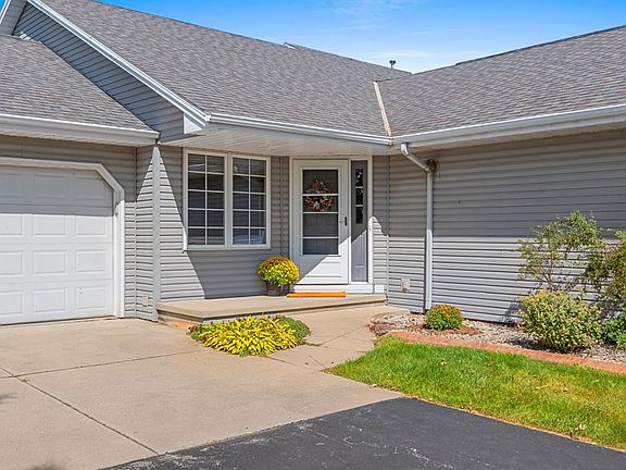 View and access to Bay! Located between Brown Cty and Door Cty! Condo paradise! 3 bedrm, 2.5 bath w/ HW, new carpeting! Fully applianced kitchen, staggered oak cabinetry, raised snack bar, patio door to deck. Open concept great room with vaulted ceiling, gas FP, TV shelf. Primary bedrm w. new HW floor, walk in closet, primary bath w/ shower/tub, oak vanity. Half bath/laundry w/ washer/dryer. Finished walkout LL w/ 2 bedrms, walk in closets & patio doors to lower patio, full bath/shower/tub. GFA & C/A 8/14/2014, water heater 8/19/2013, water softener, sump pump, shelving. 2 stall attached garage, insulated, drywalled, opener, keyless entry, shelving. Estate sale/selling as is/where is. Primary bedrm HW to be installed mid Oct.