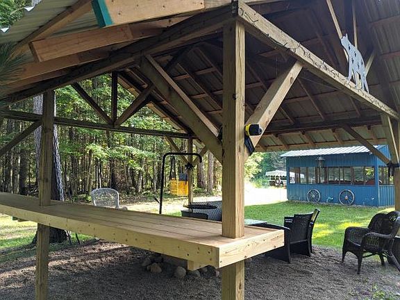 This level wooded lot offers 125' of frontage in a quiet bay with direct access to scenic Soo Lake, a full rec class A Musky lake! This property offers direct ATV trail access and is near 24,000 acres of public hunting land and is minutes from the Flambeau State Forest and Connors Lake. This lot is level, wooded and private, and has a winding driveway to the cleared building site. There is a pavilion on a gravel pad with bar area; outhouse and shower room; 3 season screened room on concrete slab with lean to; lean to for wood storage; and storage shed. Power is on site and there is high speed internet available on site. If you are looking for a turn key opportunity the camper is also available for sale separately. Ask for details! Let the fun begin!
