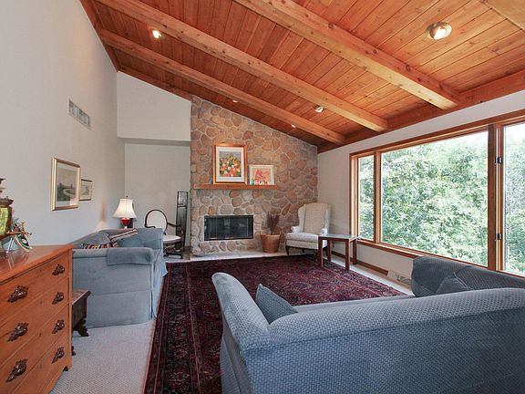 Serene & Peaceful this home sits on 5 wooded acres & has 312 ft. of channel frontage that leads to Lake Beulah. ''Ray Prell'' custom built home features floor to ceiling stone fireplace, cathedral ceilings, corian countertops throughout, sunroom, master suite with 2 walk in closets, den/office, 4th bedroom, full bath & large family room. Finished lower level also houses a full functional 2nd kitchen. Beautifully landscaped with several flower gardens the property includes an above ground pool with large deck for entertaining, additional deck, hot tub, walking paths, 24X15 Pole Barn & private pier in channel that accesses Lake Beulah. Very private and secluded this home offers plenty of space indoors & out making a perfect primary or secondary home. Definitely a must see to appreciat