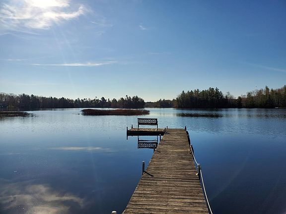 NEW PRICE! REDUCED $15,000.00! Turn Key Up North Get-A-Way situated on a 2 acre partially wooded lot on Greater Bass Lake with 177' of water frontage. The 2007l (built in 8/2006) Breckenridge Park Model home comes fully furnished and can accommodate several people. Sit by the fire pit or take a stroll down to the waterfront where you can sit in the screened gazebo or take a pontoon ride with the family (Pontoon is included: 20' 1999 Fisher, Aluminum Hull and 40HP Mercury Motor), or take a paddle boat ride, also included. A 12x25 Carport and storage shed are also included. The path to the lakefront is lit and the gazebo also has a electric. The location of this property is perfect for all types of recreation. You can access the ATV/UTV trails, Snowmobile trails and an 18-hole public golf course is a short distance away. Several eateries are available where you can enjoy local cuisine and company. Come join the neighborhood and enjoy life in the Northwoods!