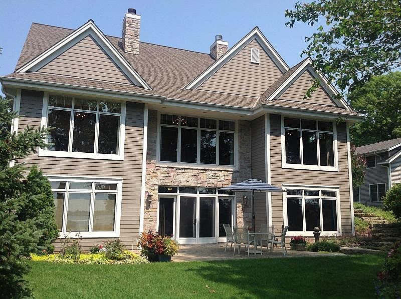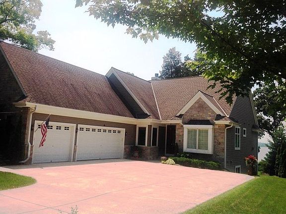 Lake living at its finest. Custom quality built home with gorgeous westerly lake views from nearly every room. This spacious well laid out home has 12' ceiling in great room 10' in rest of main level & close to 9' in lower level which has in floor heating. Kitchenette & bar in LL are great for added entertaining along with the nicely landscaped yard leading to the 79' of shoreline. Granite counters Hardwood flrs Lge Crown & Base boards travertine MB suite 3 Fireplaces are some of features.