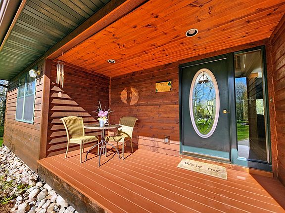 This sprawling 3-BD, 3.5-BA home offers prime LOCATION. Nestled on 2.7 acres just minutes from town, area lakes, directly on ATV route and across the road from the school forest offering hundreds of acres of public land with hiking trails, groomed cross country ski trails and snowshoe trails. A grand entrance welcomes you into the formal dining room and living room adorned with cathedral ceilings, overlooked by a charming catwalk. The eat-in kitchen offers plenty of storage with custom Amish Built cabinets. The primary bedroom boasts a walk-in closet and an ensuite bathroom with a luxurious soaker tub. Upstairs, two bedrooms with ample double closets share a well-appointed bathroom. The finished basement adds significant living space, comprising an enormous family room, bonus room, and another bathroom. Convenient access to the basement is provided through the 2-car insulated garage, ensuring ease and comfort. This home offers the epitome of serene living in a picturesque setting.