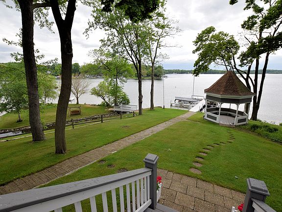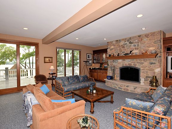 This is one of the most unique properties on Lake Beulah. Approximately 250 feet of sandy solid swimming frontage on the prestigious east shore of Lake Beulah. The property has its own little island with a beach for the children to play. Lots of shoreline for piers and boats. There is a gazebo at the lakefront, there are many perennials and a stamped concrete patio. A wonderful deck off the front of the home lets you enjoy a beautiful sunset every night and a wonderful view of the lake. The first floor of this large home features a new kitchen that was remodeled in 2006. There are 2 dishwashers, stainless steel appliances, granite countertops and hardwood floors. There is also a formal dining area, large living room with a natural fireplace, three bedrooms, one and half baths and more sleeping areas for guests. Many more amenities to numerous to mention.