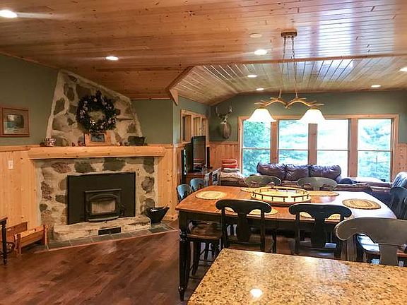 Privacy, Privacy on this 13.89 acres parcel that border 1,000's of acres of Lincoln County Land on a private lake. The home has the charm of the original cabin and all the updates you are looking for in a home. Open kitchen/living/dining area with stone fireplace. Kitchen has granite counter tops, stainless appliances, wood flooring, patio doors that lead out to large lakeside deck. 4 bedroom, 3 full bath include a master suite with patio door that leads out to lakeside deck. All baths have custom sinks. Walk out basement includes rec room and large entrance with area for all your snowmobile/atv gear. This area has access to the best ATV/Snowmobile trails in the Northwoods. Shown by Appointment Only, Private Property. There a 4 legal bedrooms but Septic is for a 3 bedroom home.
