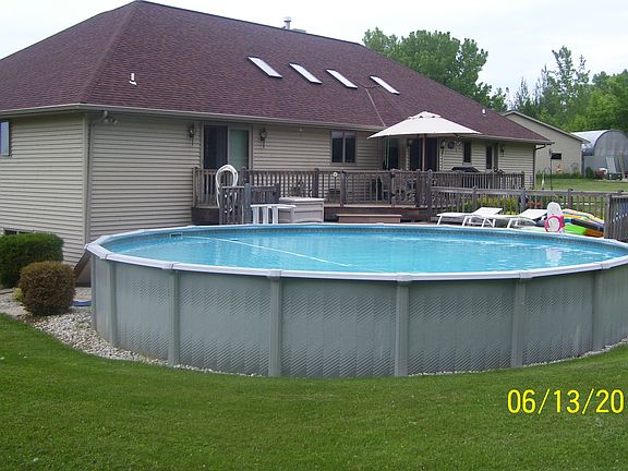 Open Concept home w/large great room/kitchen combination, finished lower level w/large wet bar and theater area, 3 BR, 3.5 bath, Anderson Windows throughout, Large open yard @ 2.5 acres, 40'x40' Shop w/Car Lift, Blacktop Driveway, 28' dia Above Ground Pool w/Composite Pool Deck, easy 18-minute travel access to Green Bay and Door County, quiet and Safe neighborhood on cul de sac.