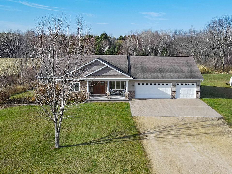 Stunning ranch home situated on 3.43+/- acres. Step inside to a large living room with views into the dining area. The dining area offers a patio door leading out to a paver patio and mini decorative pond and your private yard with wildlife galore! The kitchen offers a center island, appliance package and tons of cabinetry. Primary bedroom with walk-in closet, private bath with dual vanity, soaker tub and walk-in shower. 2 additional bedrooms and full bath. The laundry room and mudroom area with lockers completes the main level. Lower level offers a family room, 4th bedroom and a full bath. Tons of additional storage space also. Attached tandem garage with basement access and overhead door leading out to the backyard. Geothermal heating/cooling system.