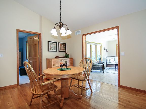 This glorious hideaway just a few miles south of Verona is beautifully sited on 1.5+ lushly landscaped acres surrounded by peace and nature. Special features include a ton of living space on the main level with a gorgeous kitchen (granite tops, solid wood flrs) which opens to a sunroom overlooking the private back yard, a beautiful stone fireplace in the living room, and finished walkout LL with a fully equipped wet bar and game room. There is also a water spigot w/ softened water in garage for washing cars.