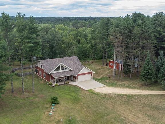 Are you looking to get away from the hustle and bustle of the City life? This is the home for you! Quality built home sitting on a little over 9 acres with over 330 feet of frontage on the Hay River Wis. This 4 BD, 2.5 BA home offers geothermal heat with Sip Panel Construction. Natural light flows into every room while enjoying the wildlife & views. Enjoy the activities the River has to offer. Sit on the front porch, back patio or upper deck to take in the sounds of nature. Need extra space to store your toys or work on your hobby you will love the 20X40 Pole Shed w/a heated workshop (20X20 geothermal heated) or the 8X10 Storage Shed. 9 " fence encompasses the garden area, fenced in play area, raspberries, blueberries, 2 Plum trees, 3 Apple trees. Call today for a private showing!
